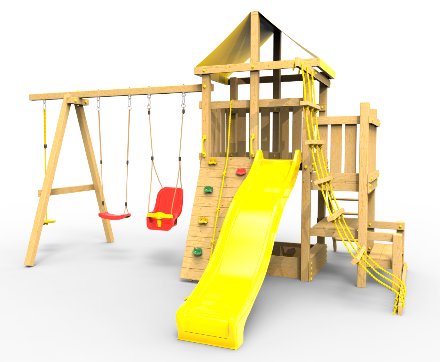 ● деревянная крыша ● трап 2м с канатом ● поручни для лестницы ● диван на цепях двухместный ● столик в песочницу