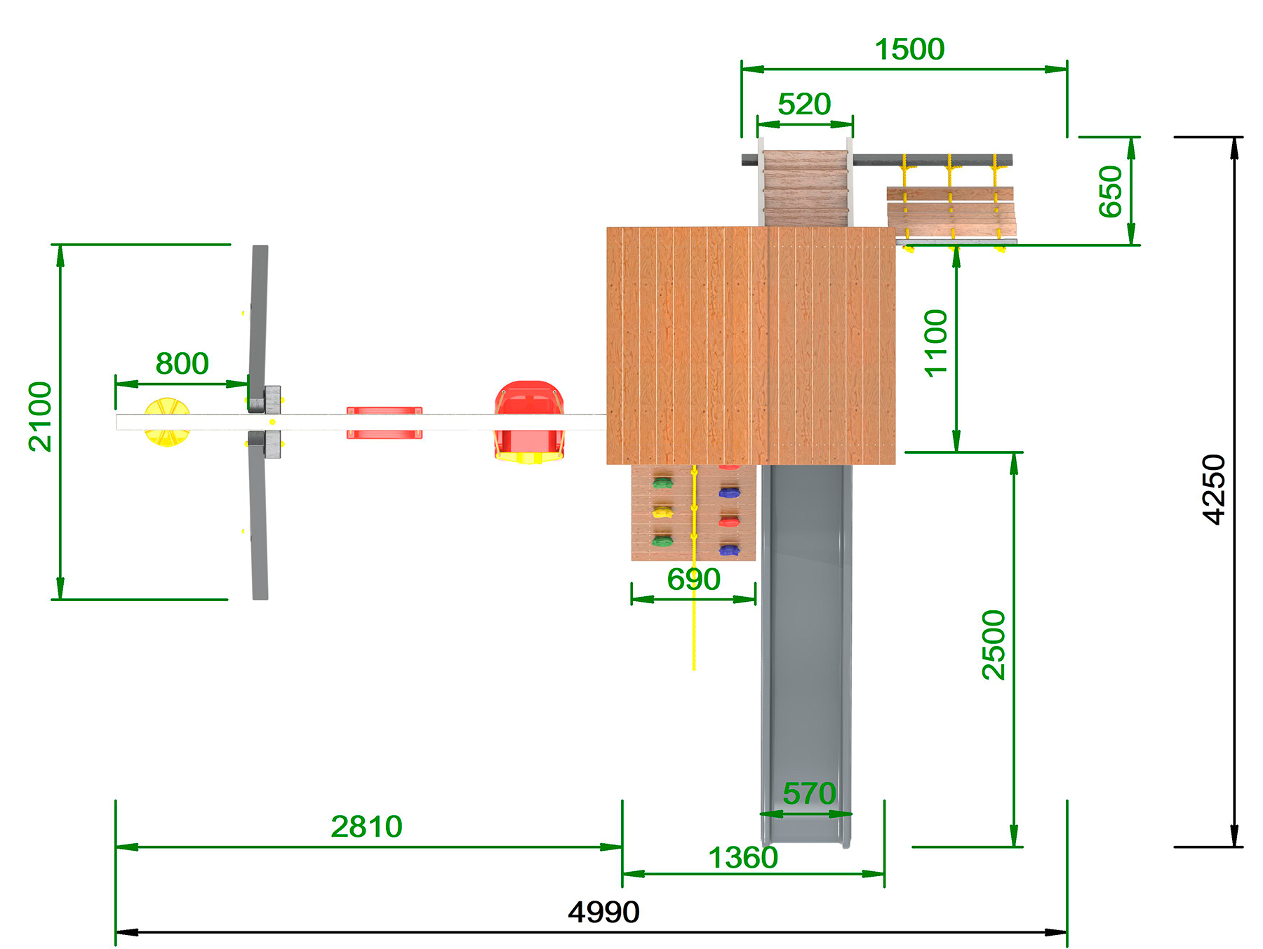 Обращаем Ваше внимание, что фактический цвет детской площадки может отличаться от представленных фото на сайте. Специфика окраски нетоксичными пропитками и красителями допускает отклонения в цветовой гамме отгружаемых изделий. Также обратите внимание, что фактический цвет может отличаться из-за цветопередачи устройства на котором Вы смотрите фото.