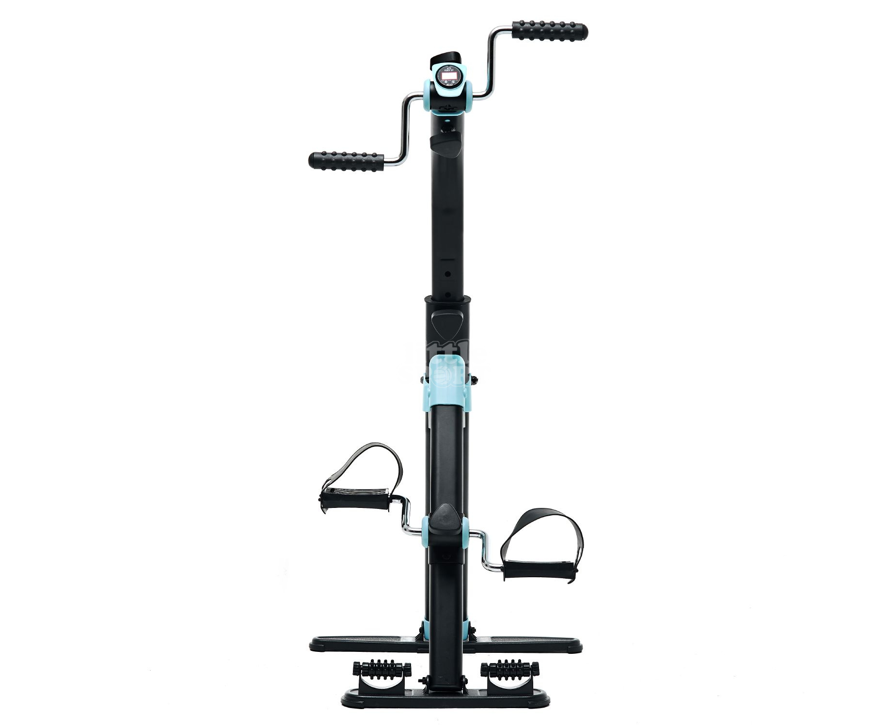 В основании тренажёра предусмотрены ролики с пупырчатой поверхностью для массажа ног. Такими же накладками оснащены рукоятки.